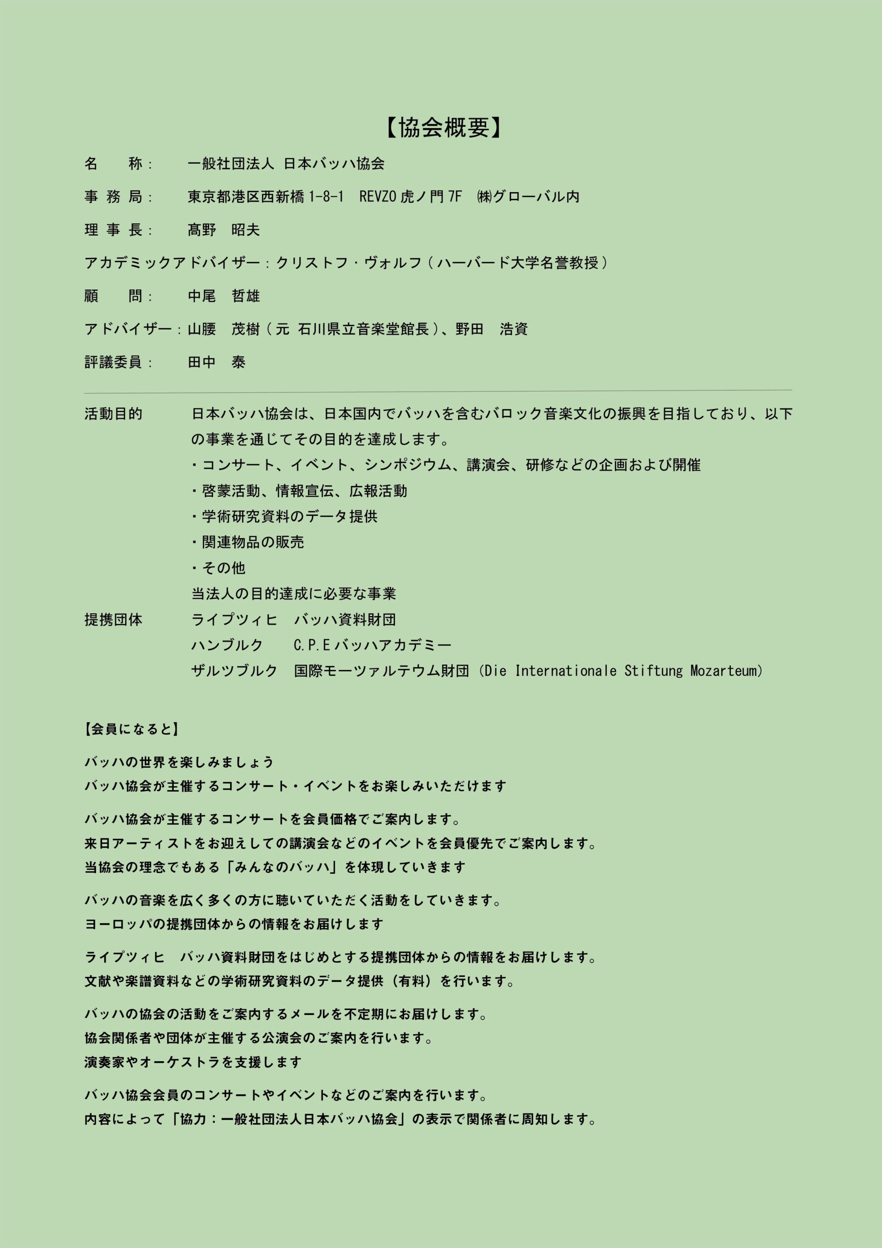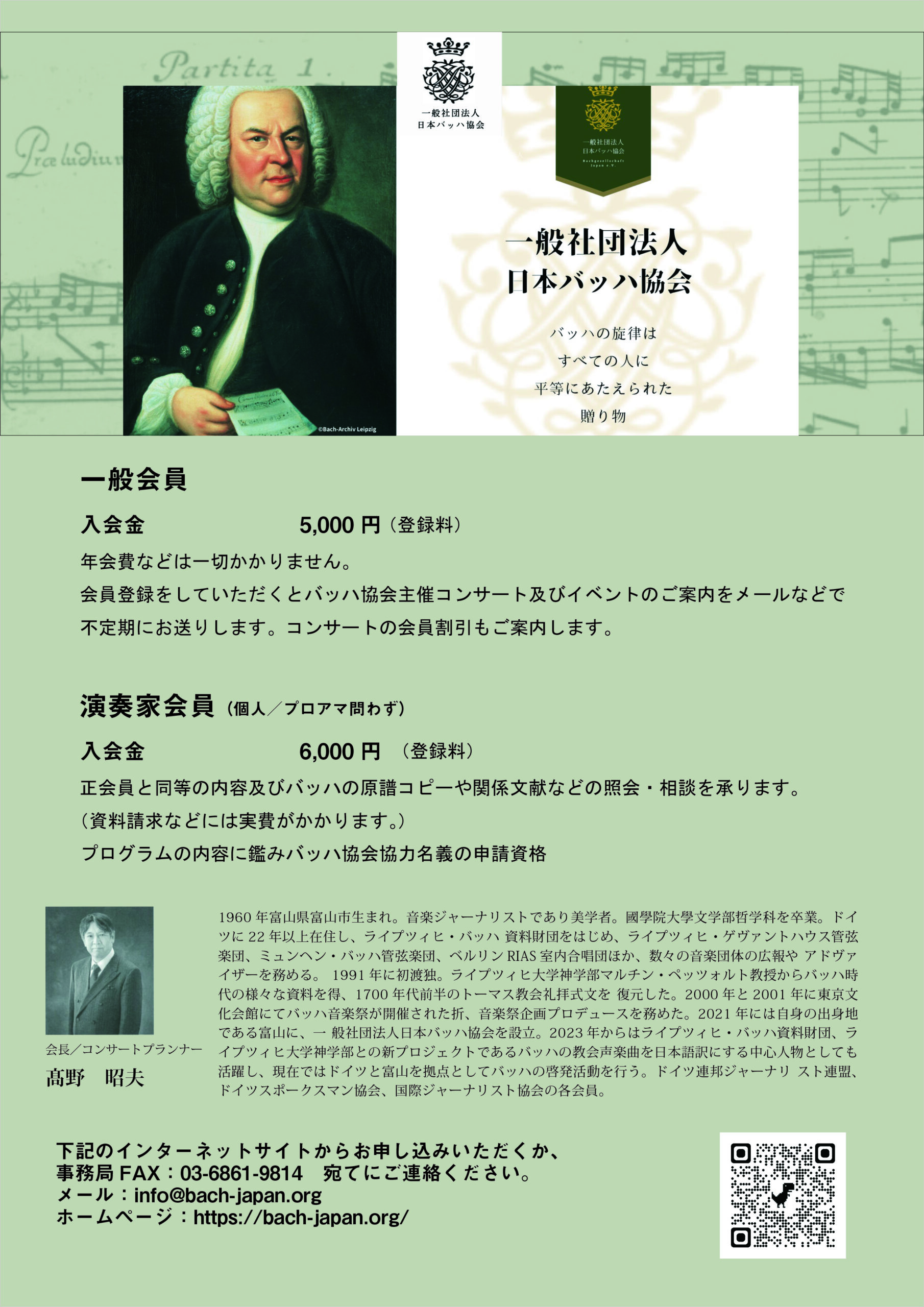 「一般社団法人 日本バッハ協会」創立に寄せて 髙野昭夫
