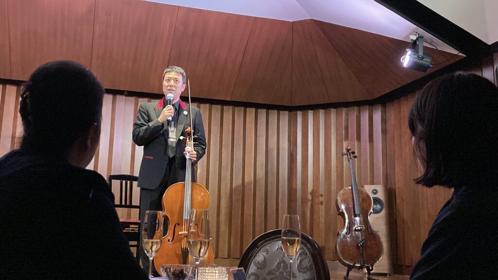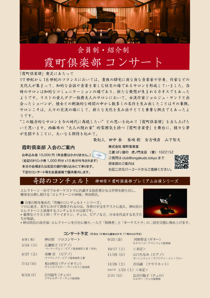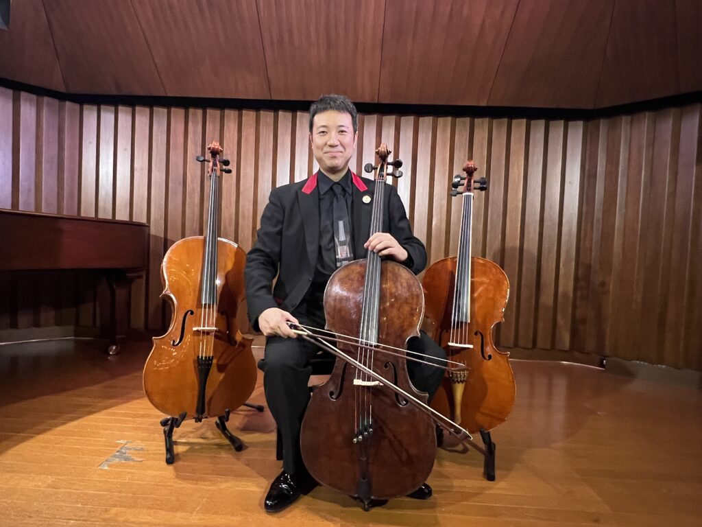 2026年1月14日に霞町音楽堂にて、日本バッハ協会後援の霞町俱楽部コンサートを行いました。チェロの海野幹雄さんの演奏はバッハの無伴奏チェロソナタ第1番、5弦の楽器で弾く第6番などをお聴きいただきました。海野さんには3台のチェロをお持ちいただき、それぞれのエピソードとともに素敵な演奏をお楽しみいただきました。
